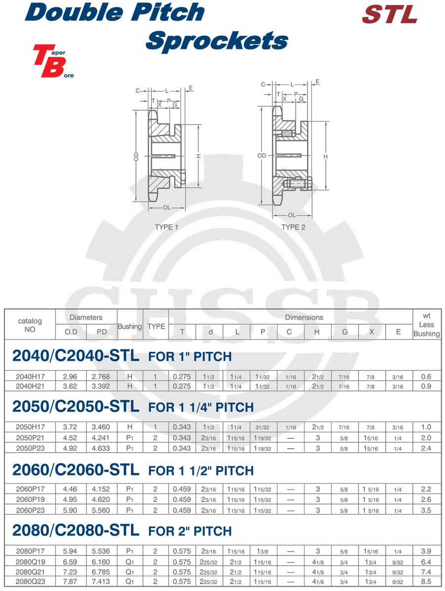 Range of product: ANSI:(2040/C2040/2050/C2050/ 2060/C2060/2080/C2080) Inch size product (Apply to ANSI market) STL Double Pitch Sprockets