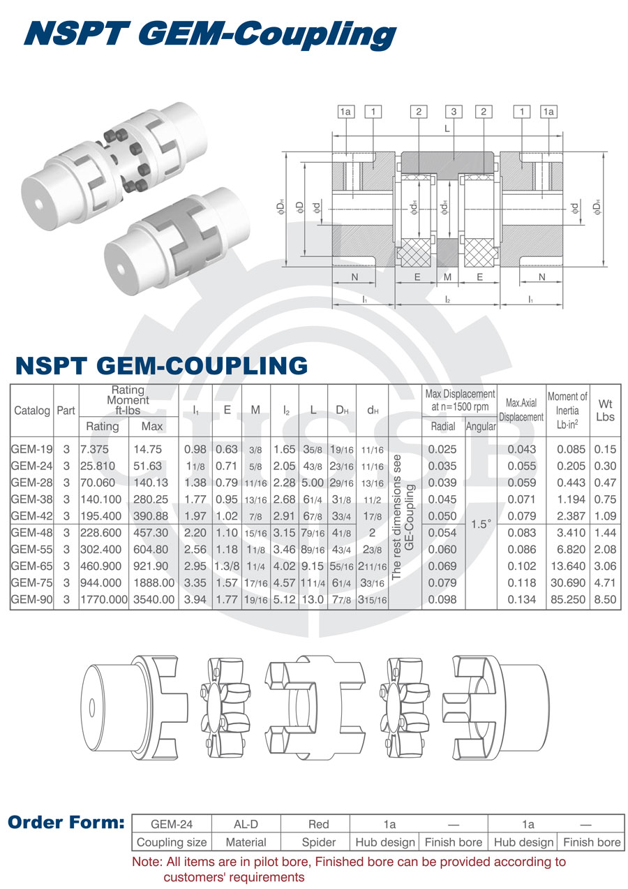 產(chǎn)品范圍: 美標(biāo)/歐標(biāo):(GEM) 英制尺寸產(chǎn)品(適用于美標(biāo)市場(chǎng)) 公制尺寸產(chǎn)品(適用于歐標(biāo)市場(chǎng)) GEM型聯(lián)軸器